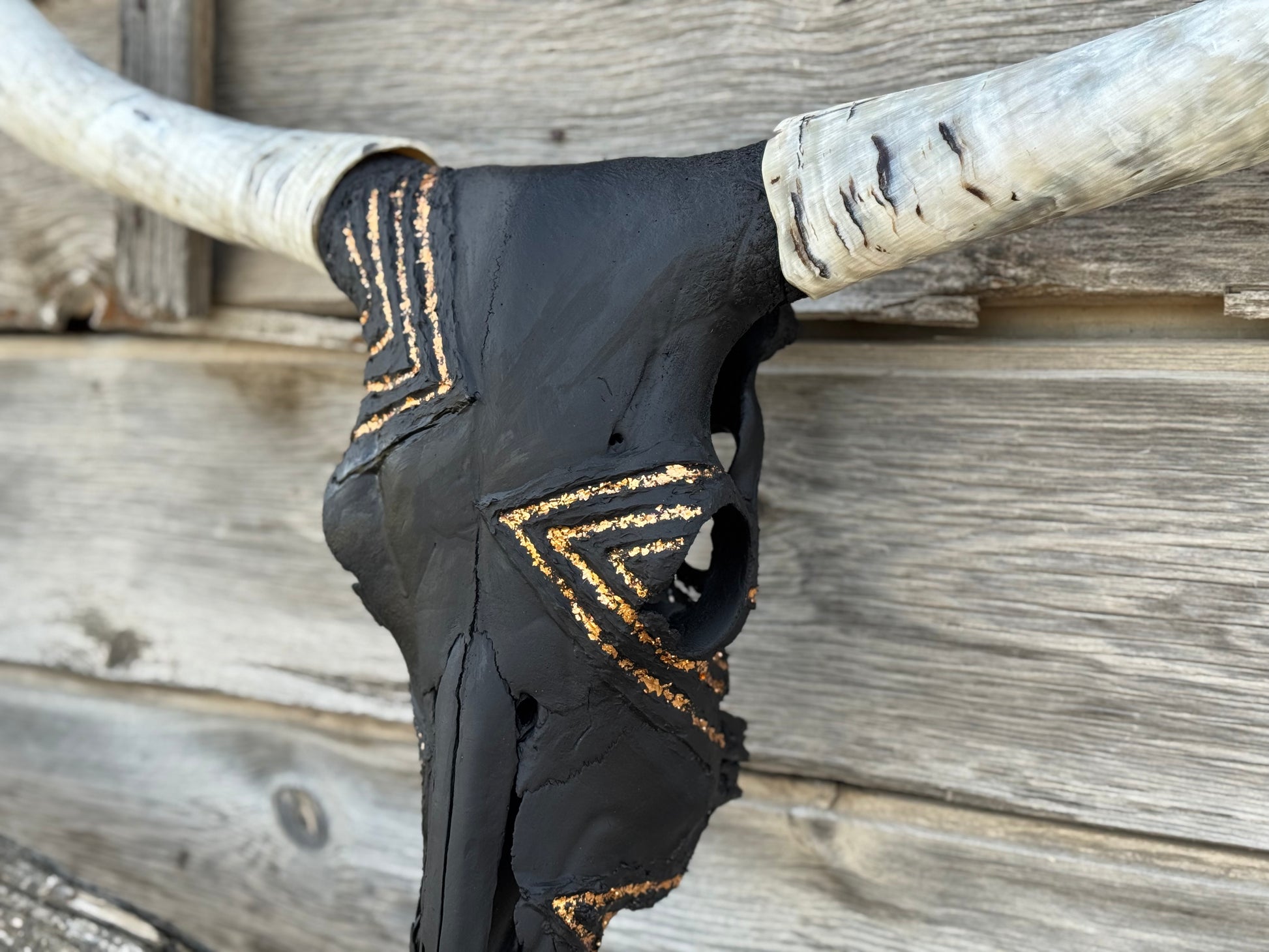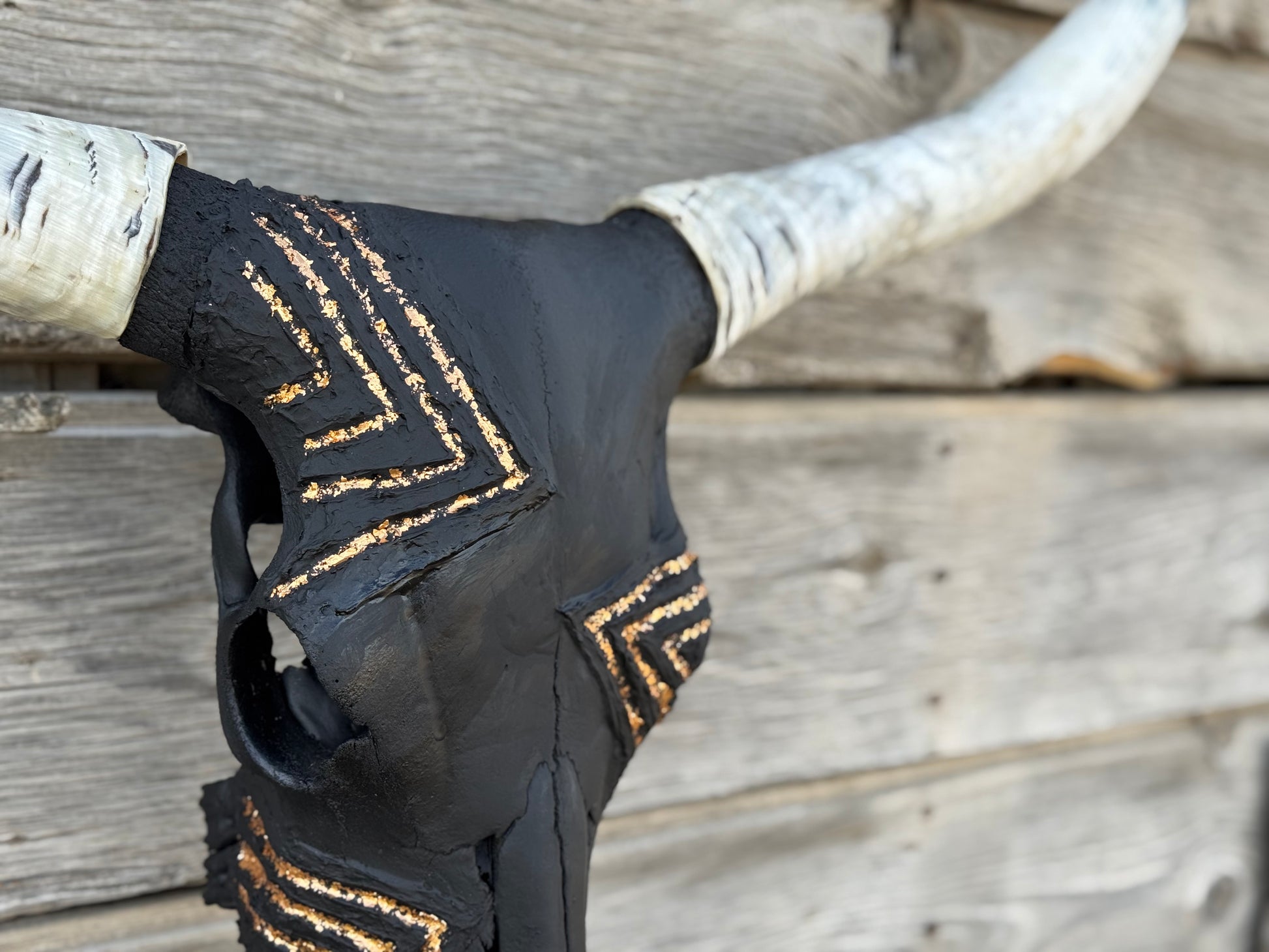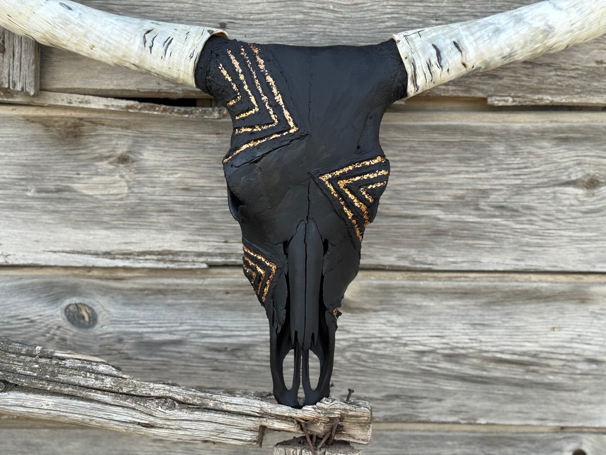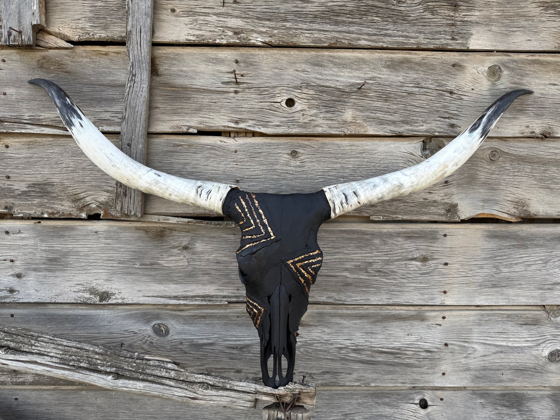 Real Authentic Longhorn skull, perfect for a modern western vibe. Pops of texture and light cooper inlay. Message on FB or Instagram for payment plan option. 🖤