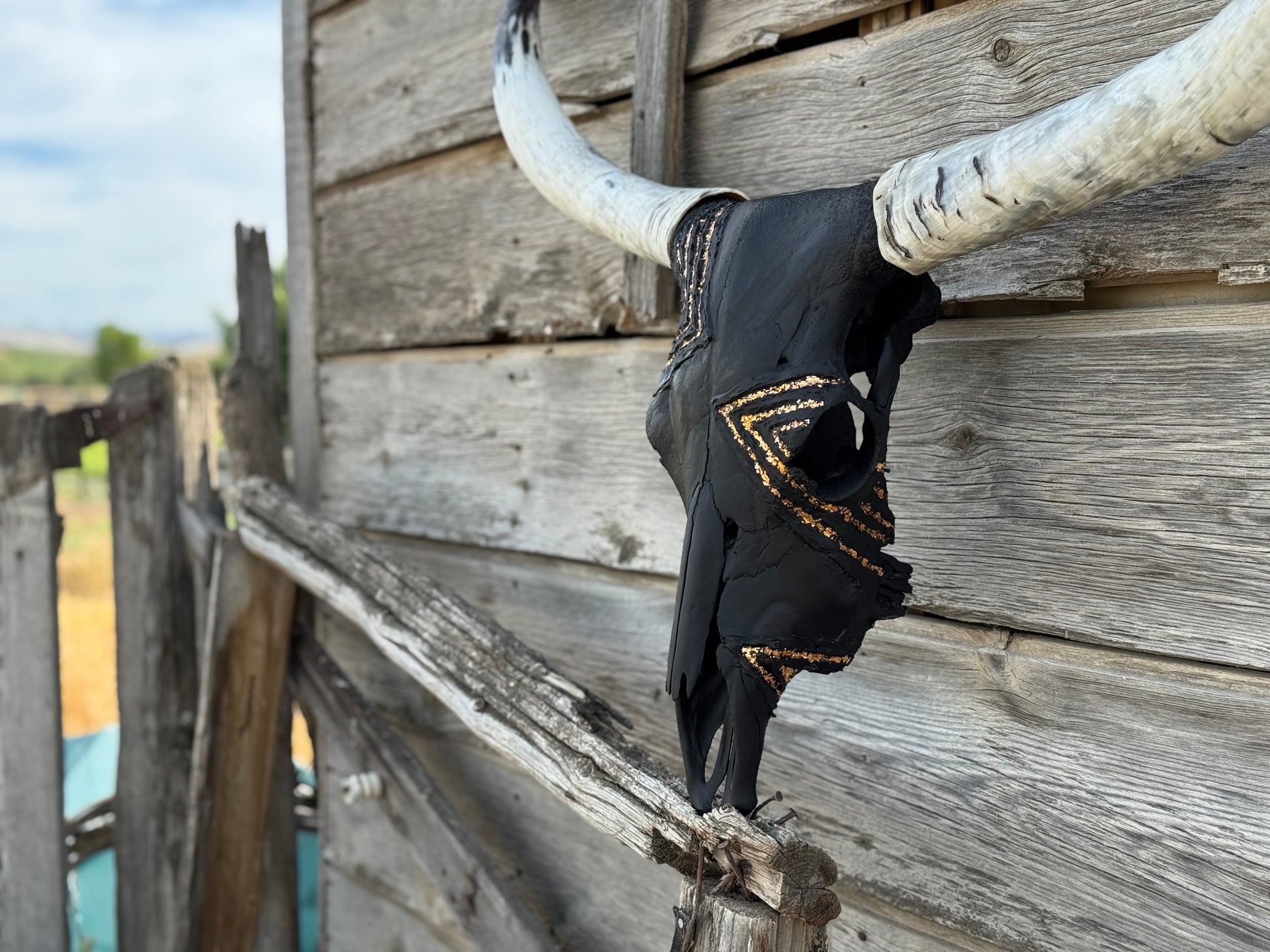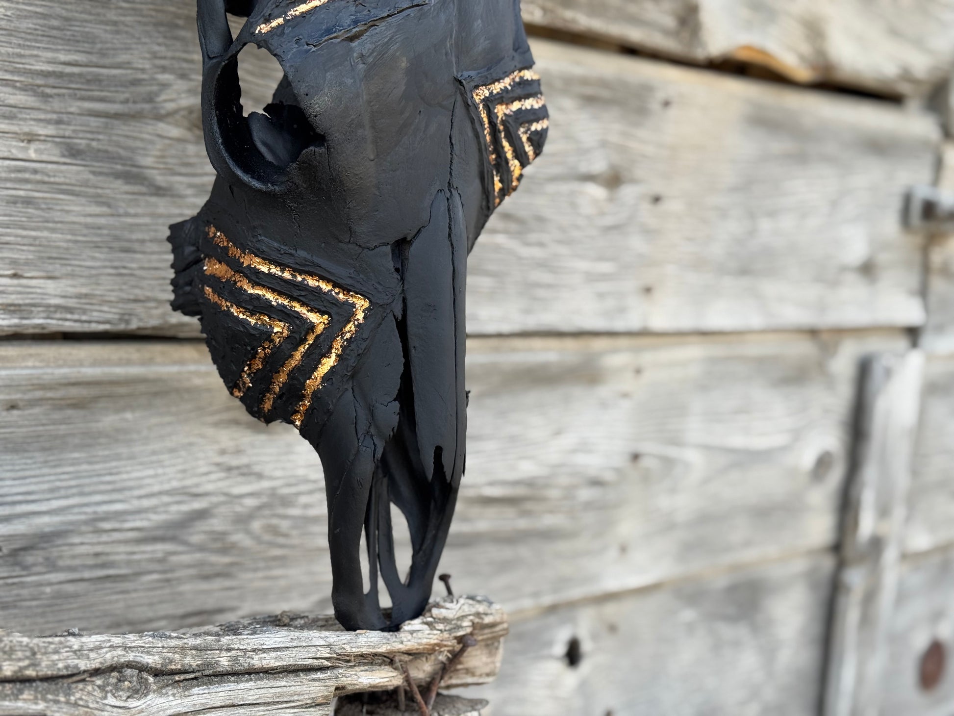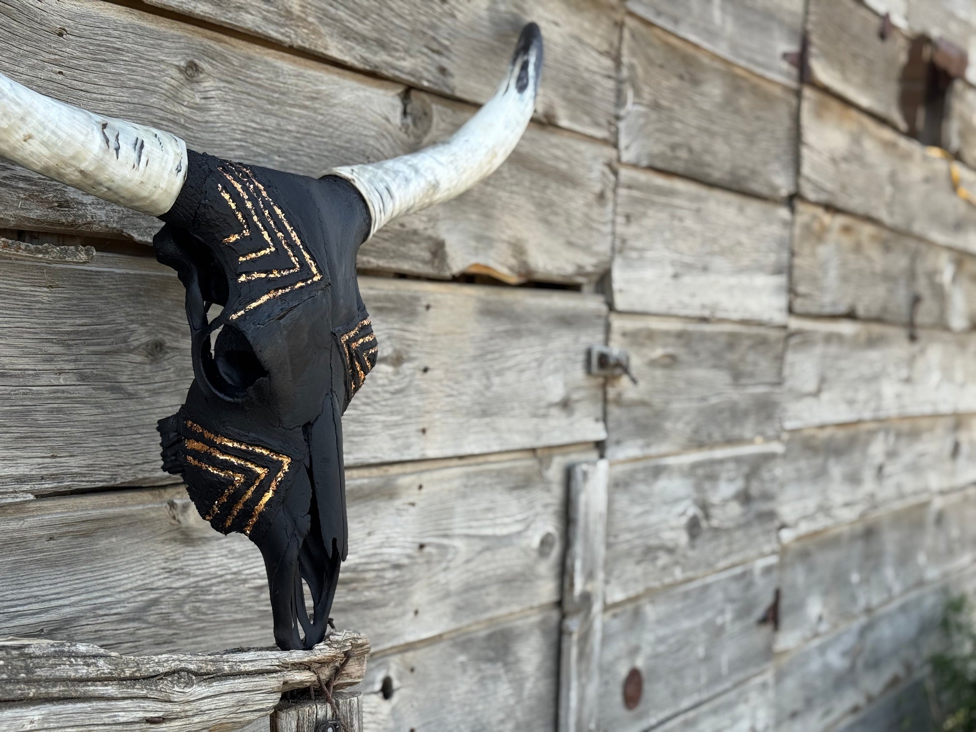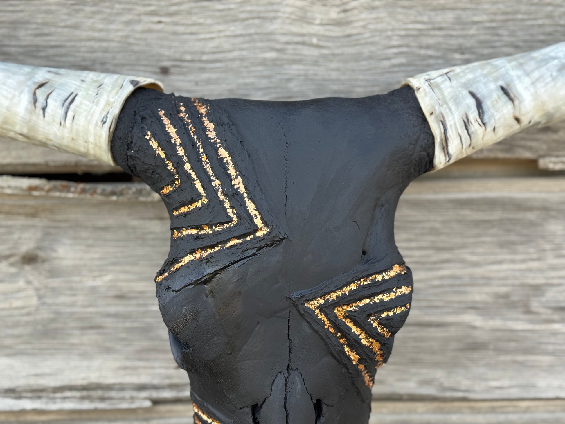 Real Authentic Longhorn skull, perfect for a modern western vibe. Pops of texture and light cooper inlay. Message on FB or Instagram for payment plan option. 🖤